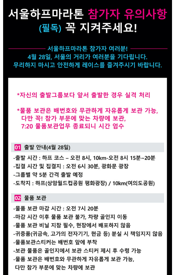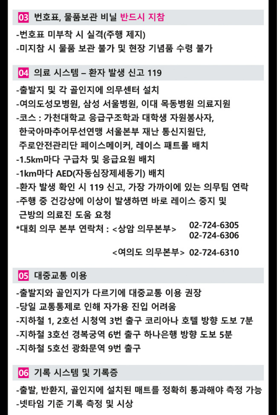 ★ 짐을 보관할 때 하프인지 10km 인지 짐 보관 차를 잘 확인하고 맡기세요